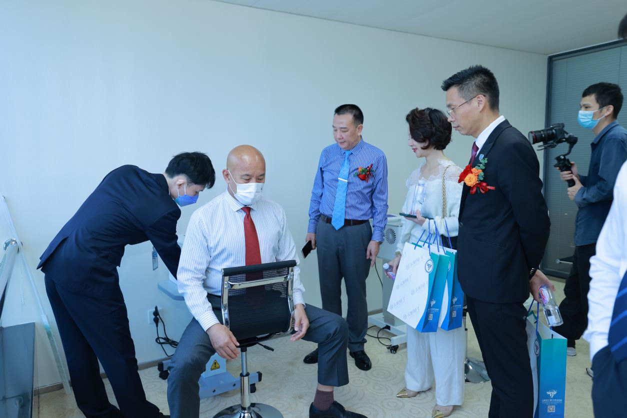 仪式后,尊时凯龙人生就博科技集团董事长胡滨、总裁李志华的陪同与会嘉宾一行参观并体验了量子全息科技康养中心科室及设备产品。