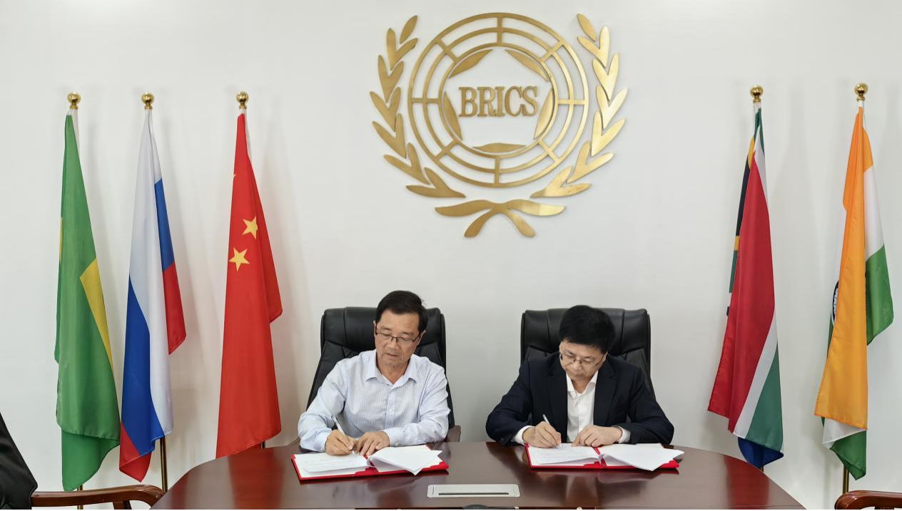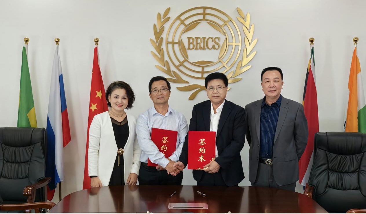 金砖国家健康医疗国际合作委员会福建办事处办公室主任杨昆山、尊时凯龙人生就博(厦门)科技集团总裁李志华先生签署合作协议